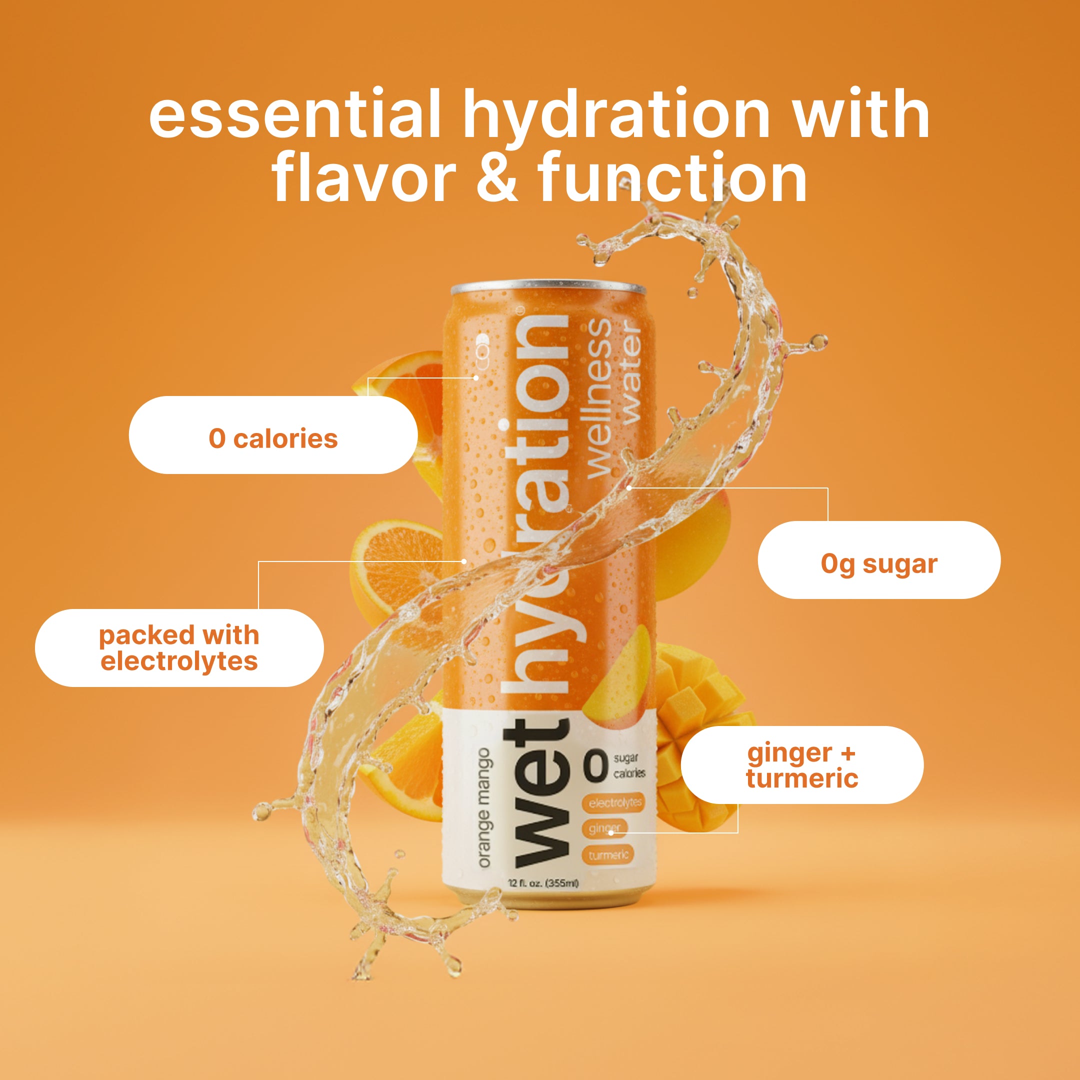 A blend of functional benefits including electrolytes for hydration, and ginger and turmeric for your overall daily wellness.
