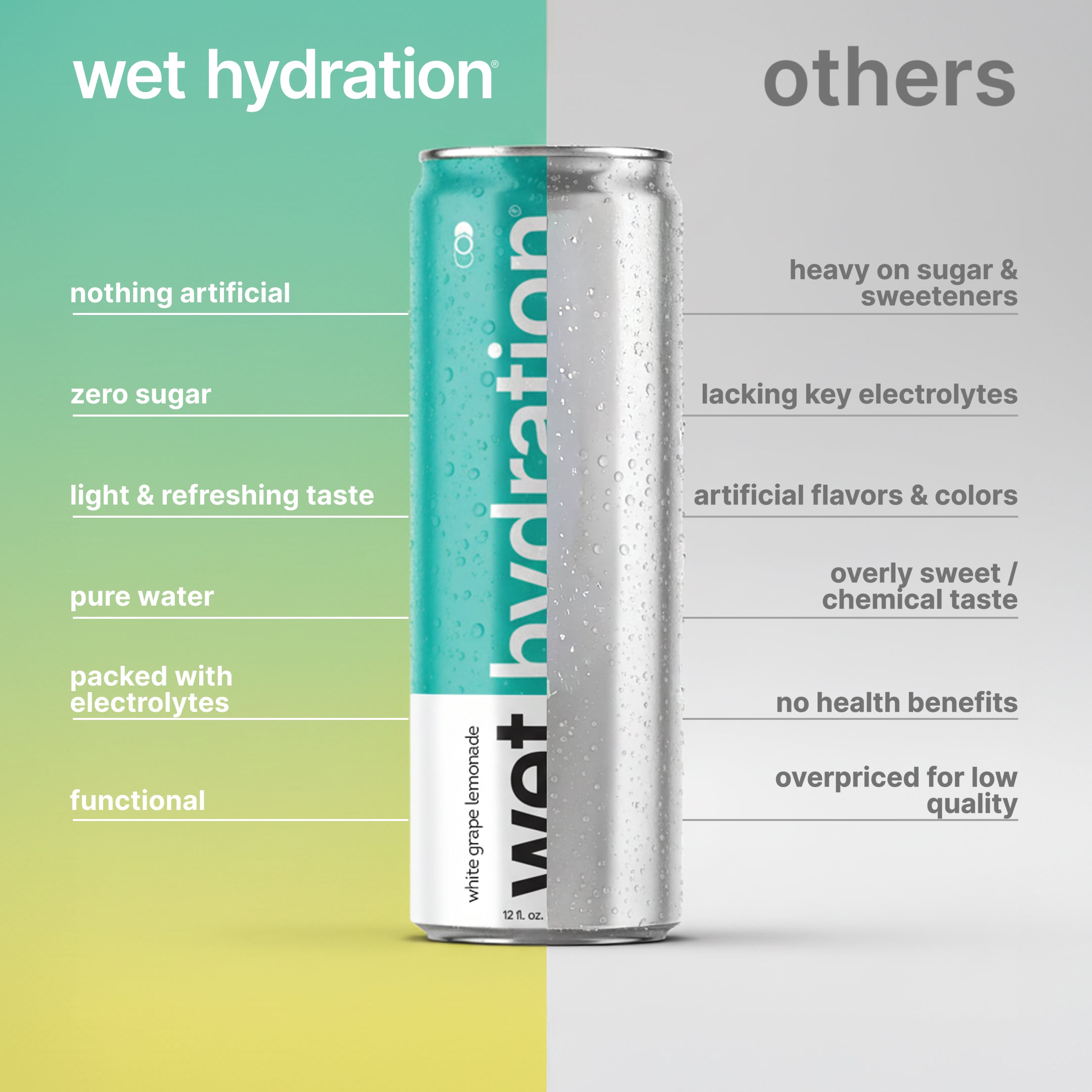 sip well, do good. Wet Hydration comes in eco-friendly aluminum cans that are easy to recycle.